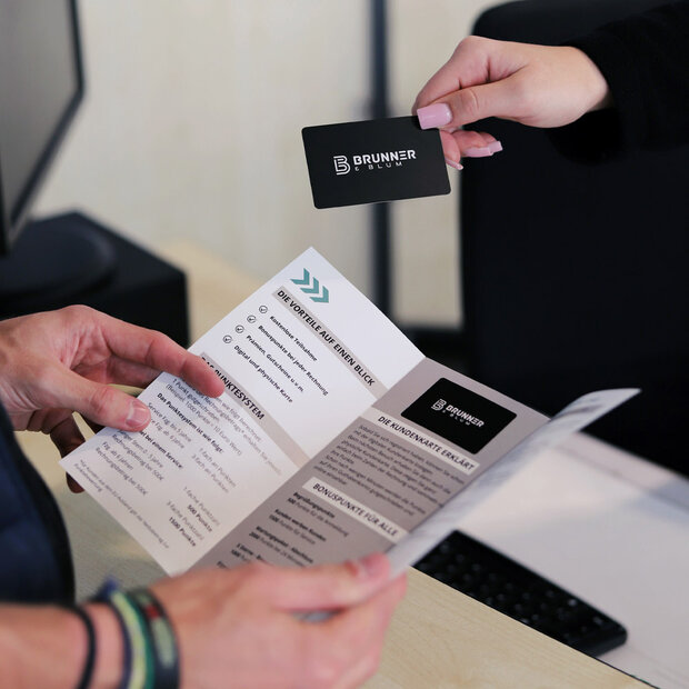 Die Brunner & Blum Kundenkarte ist für jede natürliche Person einmal ausstell bar und kann nicht an Dritte vergeben werden.